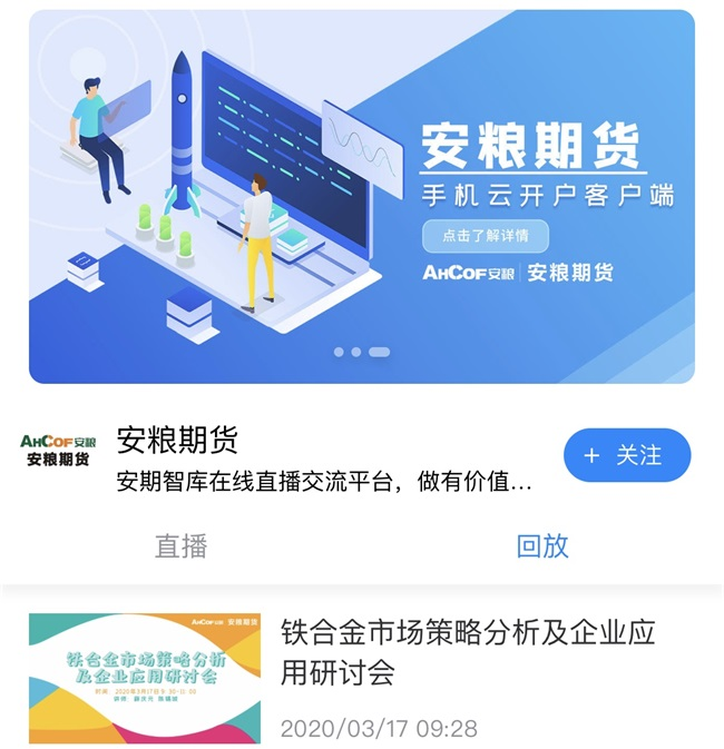 3月17日,安糧期貨利用網(wǎng)絡(luò)直播平臺召開“鐵合金市場策略分析及企業(yè)應(yīng)用研討會”,這已經(jīng)是自疫情發(fā)生以來安糧期貨舉辦的第13場線上營銷會議,有效解決了日常營銷會議無法開展的難題。據(jù)統(tǒng)計已有累計超過11000人次參與了觀看,得到業(yè)界廣泛好評。