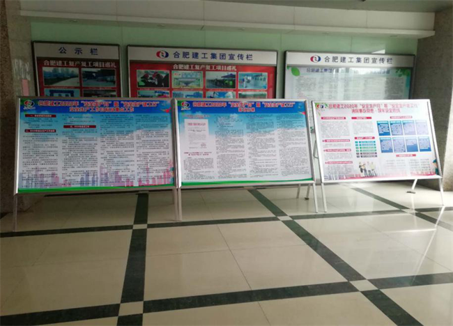 為切實增強全員安全生產(chǎn)意識和提升全員安全素質,合肥建工制作了“安全生產(chǎn)月”暨“安全生產(chǎn)建工行”宣傳展板在本部一樓大廳進行宣傳展示,各項目部在工程顯著位置張貼、懸掛“安全生產(chǎn)月”宣傳標語、橫幅、掛圖等,同時利用 LED 屏宣傳,在LED電子顯示屏上持續(xù)滾動播放安全公益廣告等,積極營造關心安全生產(chǎn)、參與安全發(fā)展的濃厚輿論氛圍。