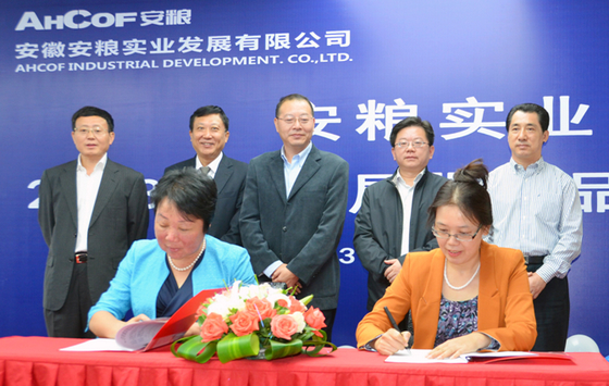 本次推介會包括新品推介和合作簽約兩個主題。在活動現(xiàn)場,安糧實業(yè)石紅董事長分別與合巢經(jīng)濟(jì)開發(fā)區(qū)、合工大農(nóng)產(chǎn)品加工研究院、省農(nóng)科院農(nóng)產(chǎn)品加工所以及合肥天孚君順商貿(mào)有限公司代表簽訂了《安糧巢湖食品工業(yè)園投資合作協(xié)議》、《農(nóng)產(chǎn)品研發(fā)與生產(chǎn)戰(zhàn)略合作協(xié)議》和《“田田屋”產(chǎn)品經(jīng)銷協(xié)議》,為安糧實業(yè)產(chǎn)品研發(fā)和加工銷售提供更為廣闊的平臺。