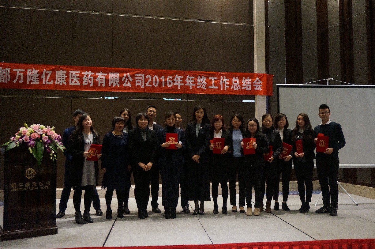 2016年已悄然逝去,2017年如約而至。為了對我公司全年的工作進行一個大回顧,分享成功和總結(jié)失敗,為次年的發(fā)展戰(zhàn)略做有力的鋪墊,公司召開:“萬隆億康2016年年終工作總結(jié)會”。領導與員工可以歡聚一堂,相互溝通和認識,一起享受晚宴活動帶來的快樂,對活躍公司團隊氛圍起到良好的作用。2017年1月18日,萬隆億康2016年年終總結(jié)會議在成都明宇豪雅酒店2樓浣花廳議場舉行。9點整,在主持人的開場白中會議正式開始,各部門領導依次上臺對2016年工作進行總結(jié)并對2017年工作進行規(guī)劃,全場職工認真聽取了各部門的匯報。會議還給2016年工作突出的11位優(yōu)秀員工頒發(fā)了獎狀。